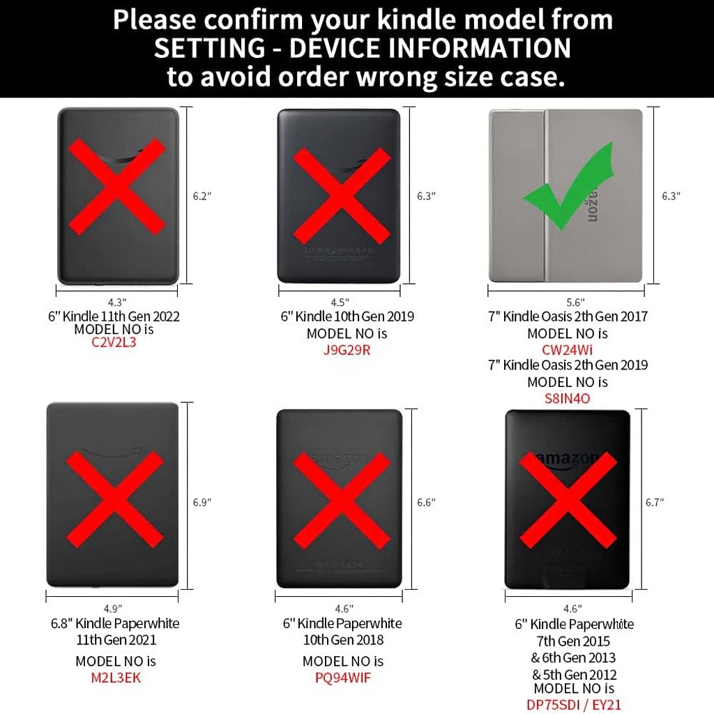 Il est spécifiquement conçu pour Kindle Oasis 3ème génération 7″ (version 2019, modèle S8IN4O) et 2ème génération 7″ (version 2017, modèle CW24Wi). Vérifiez votre modèle avant achat.